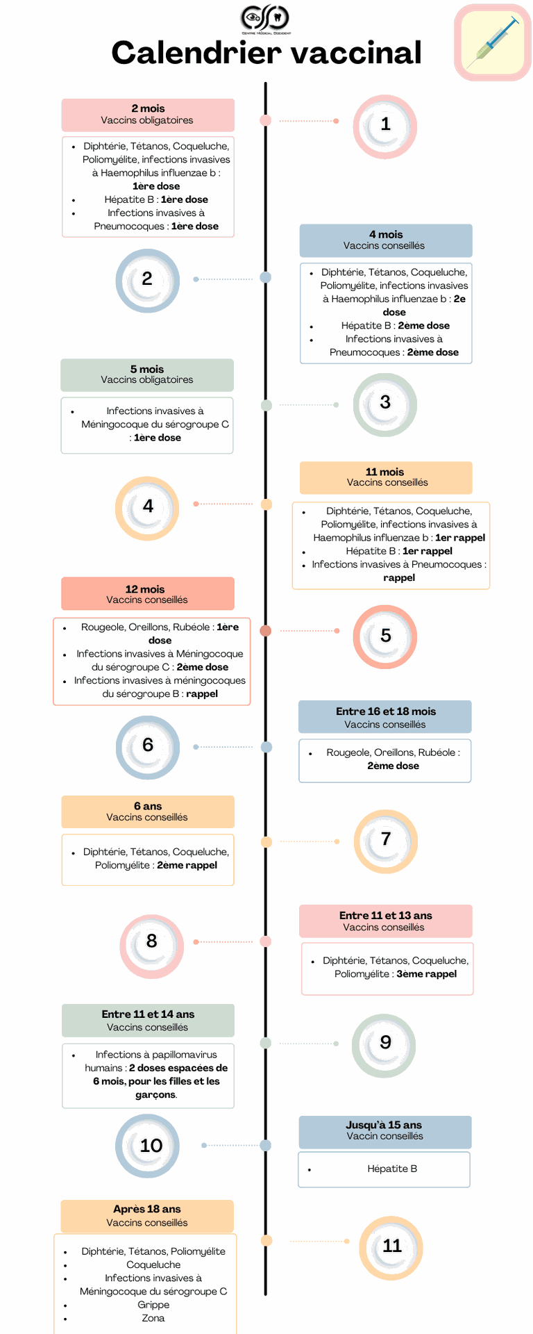 - Des visites régulières sont planifiées pour surveiller la croissance physique, le développement moteur et cognitif de l'enfant. Les vaccins recommandés sont administrés conformément au calendrier de vaccination.